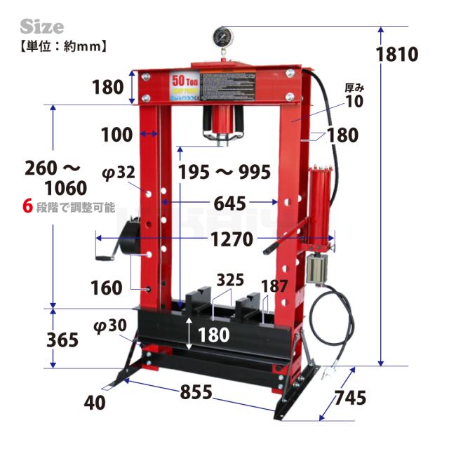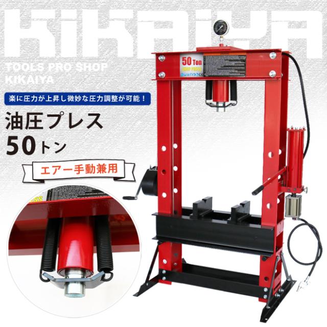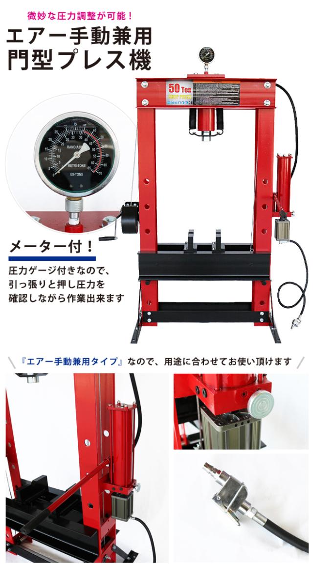油圧プレス 50トン エアー手動兼用 メーター付 門型プレス機 6ヶ月保証 KIKAIYA