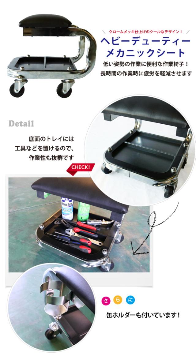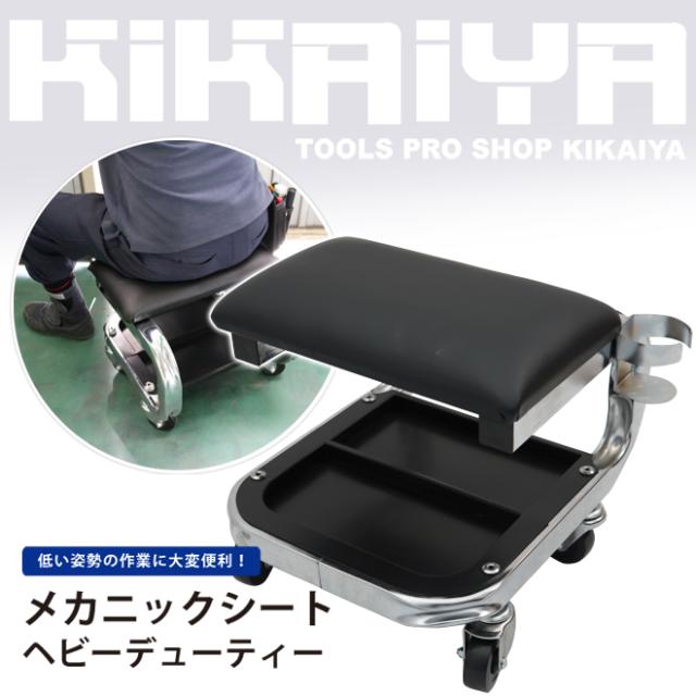 シートクリーパー 作業椅子 メカニックシート 小物入れ 缶ホルダー キャスター付き ブラック ヘビーデューティー ローラーシート KIKAIYA