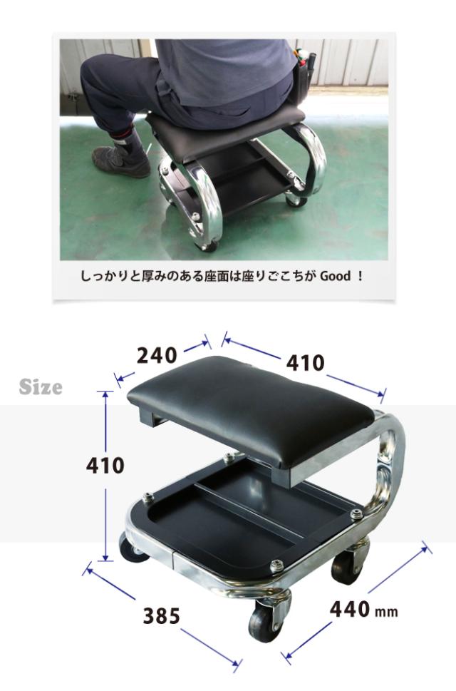 中腰状態での軽作業をラクにサポート! ●低い姿勢の作業に便利な作業椅子です ●長時間の作業時に疲労を軽減させます ●底面のトレイに工具などを置けるので、作業性も抜群です ●便利な缶ホルダー付き ●40mm角パイプフレームを使用した強固な造り ●クロームメッキ仕上げのクールなデザインです ●しっかりと厚みのある座面は座り心地もGood!! ●キャスターも大きめの物を使っており、しっかりとしています ※この商品はお客様組立てとなります(所要時間10分程度) *入荷時期により若干の仕様変更が御座いますのでご了承ください ★作業用シートはこちら 品番:MS-3 |