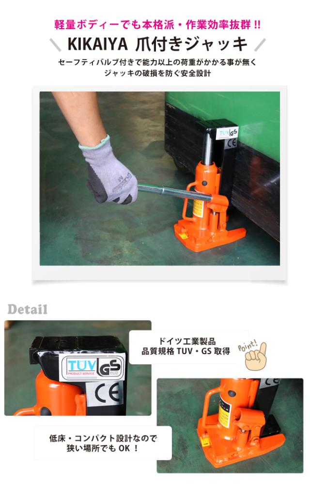 爪ジャッキ 2トン 爪付ジャッキ 油圧ジャッキ 重量物用 6ヶ月保証 KIKAIYA
