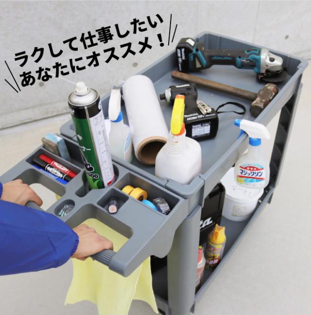 メカニックにもオススメ!かる〜い樹脂台車 ●大型ハンドルなので持ちやすく、移動が簡単に行えます ●少しの衝撃では壊れないプラパレ素材(ポリプロピレン製)仕様で劣化が少なく長持ち! ●樹脂製なので錆に強く軽くて丈夫です ●キャスターはポリウレタン製で静音タイプ! ●小物入れやタオルホルダー完備で仕事をラクに! ※ユーザー組み立て商品(スパナ・+ドライバー・ゴムハンマーが必要) | |