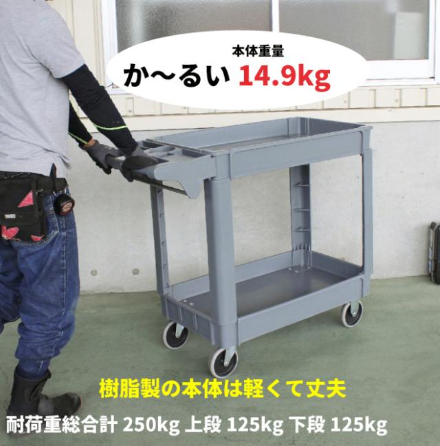 ツールワゴン 台車 250kg 2段 軽量 静音 樹脂製 プラパレ ツールカート KIKAIYA
