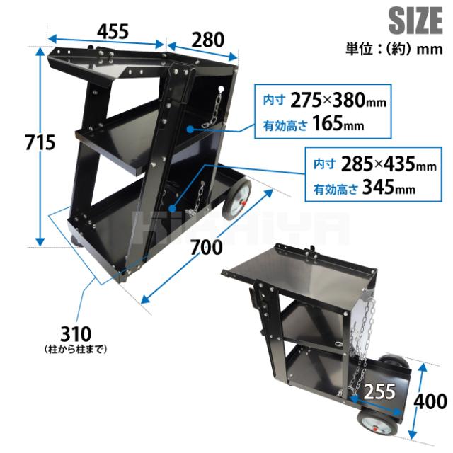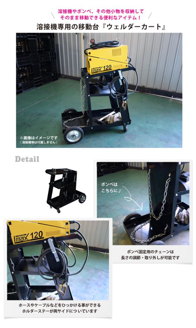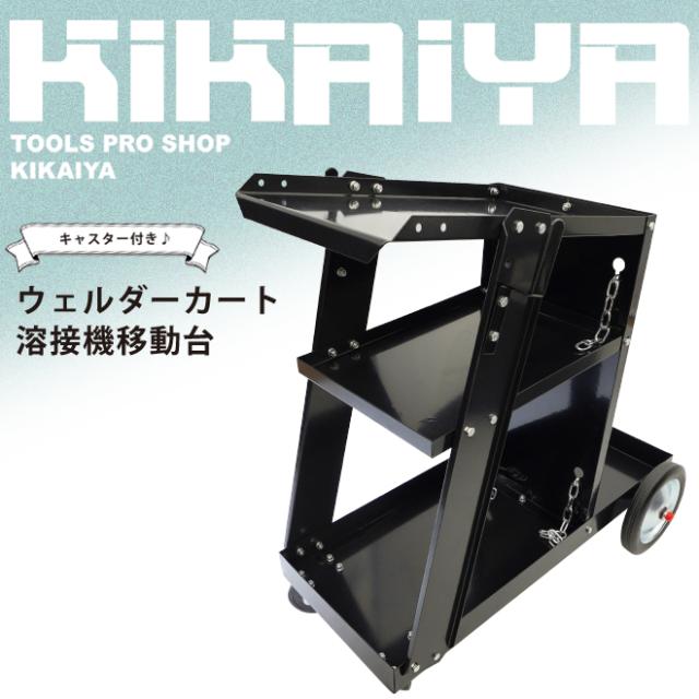 ウェルダーカート ボンベカート ウェルディングカート 黒 溶接機移動台 溶接機台 固定用チェーン ステー 3段トレー ワゴン ボンベ台車 KIKAIYA