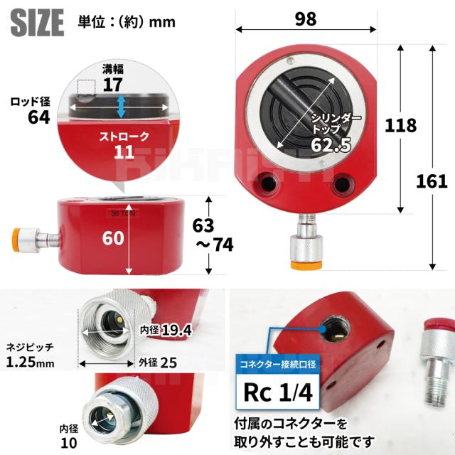 油圧 シリンダー 30トン フラットタイプ 使用油量45cc 小型 軽量 薄型 油圧工具 KIKAIYA