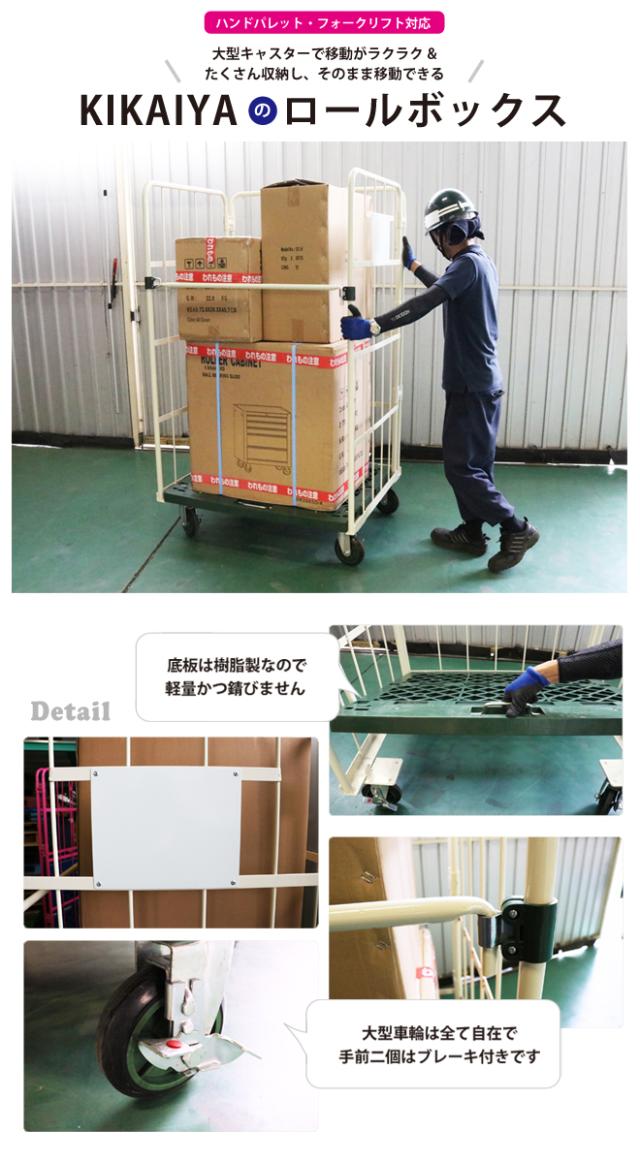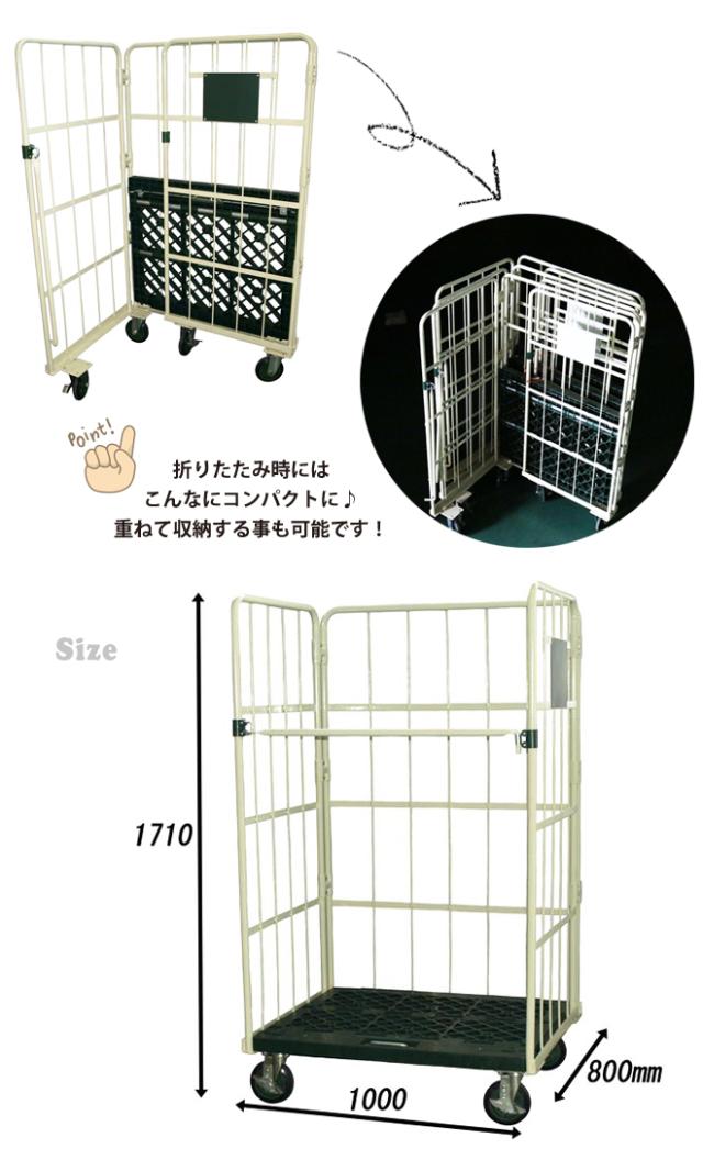 ロールボックスパレット カーゴテナー カゴ台車 W1000xD800xH1710mm 耐荷重500kg 業務用 ホワイト 白 折りたたみ ハイテナー 底板樹脂タイプ 大容量 KIKAIYA
