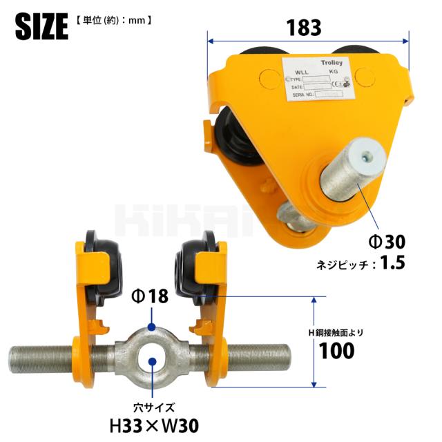 トロリー 1トン ネジ式 プレーントロリー トローリー チェーンブロック用 KIKAIYA