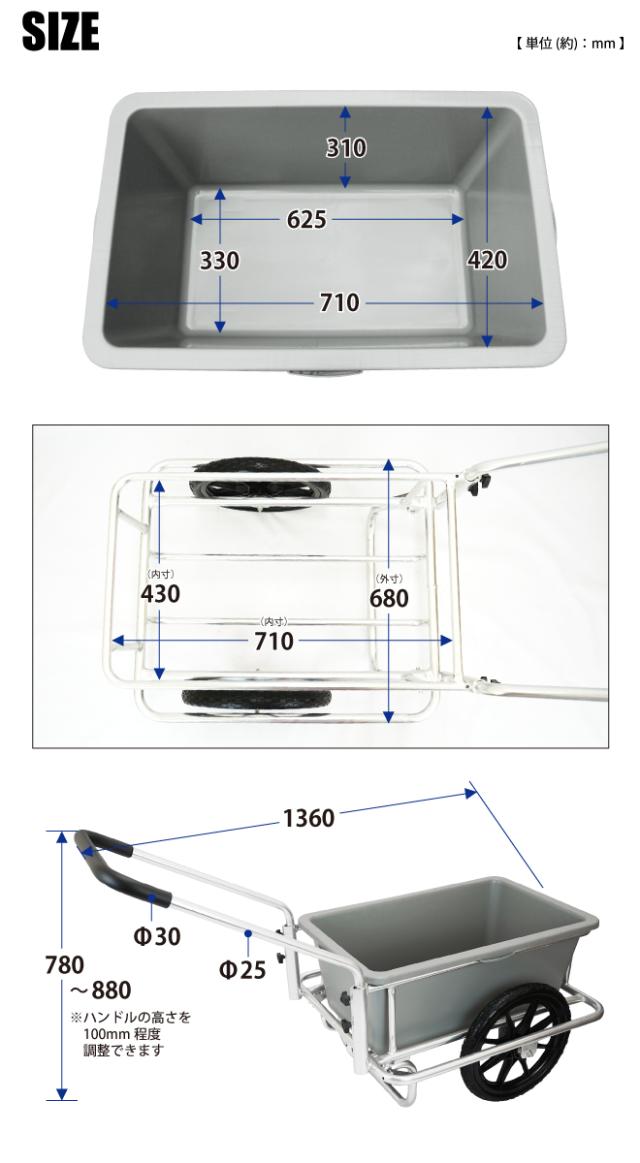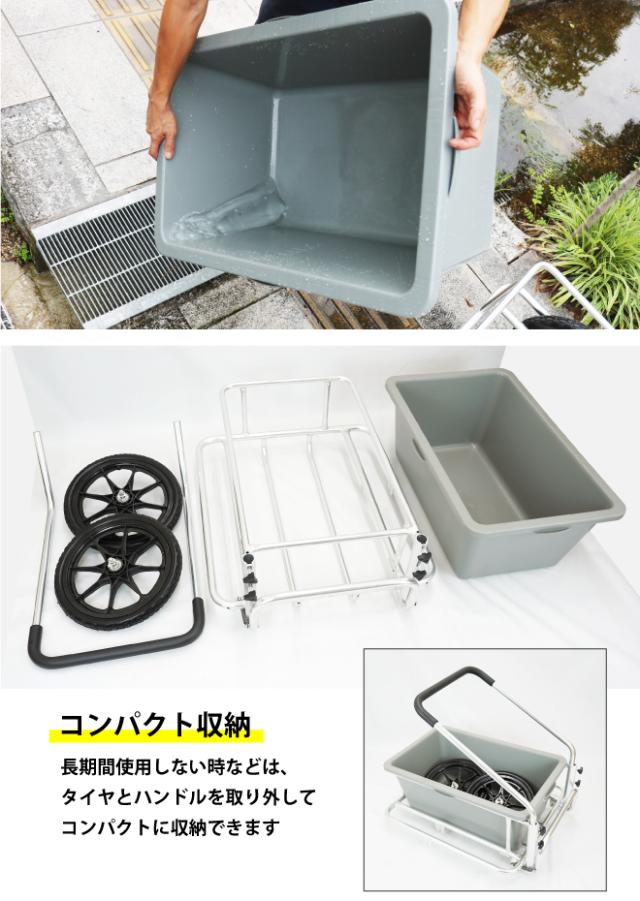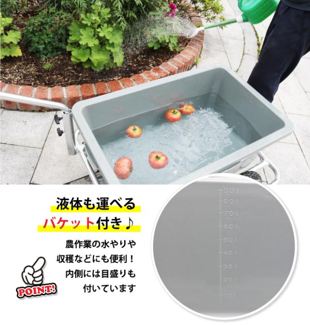 アルミリヤカー タンク付き ノーパンクタイヤ バケット台車 アルミ製キャリーカー 軽量 容量100L バケット付き KIKAIYA