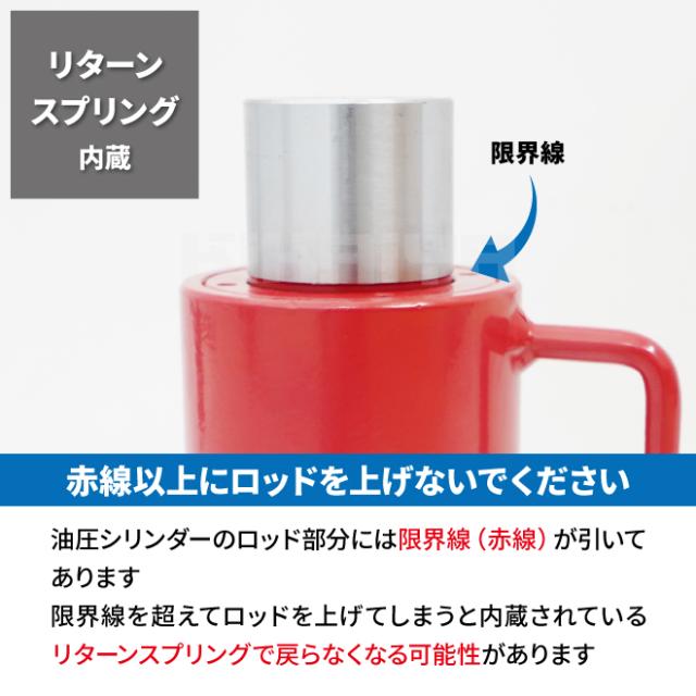 ●油圧ポンプに接続して使用するシリンダーです ※油圧ポンプ・ホースは別売りです ●リターンスプリングを内蔵しており、油圧が抜けるとロッドは自動で下がります ●ロッドには限界線(赤線)が引いてあります 自然降下しなくなる恐れがありますので限界線を超えてロッドを上げないでください ●取っ手付きで持ち運びも簡単です 【ご注意】 横置き使用は可能ですが、油漏れが発生しやすくなります 油漏れが生じた際の不具合対応はいたしかねますので予めご了承ください 【外見保証はございません】 ・入荷時期によって、商品の外観/色などが画像と異なる場合がございます ・新品ですがインポート品のため、製造過程で外見に傷、擦れがある場合がございます |