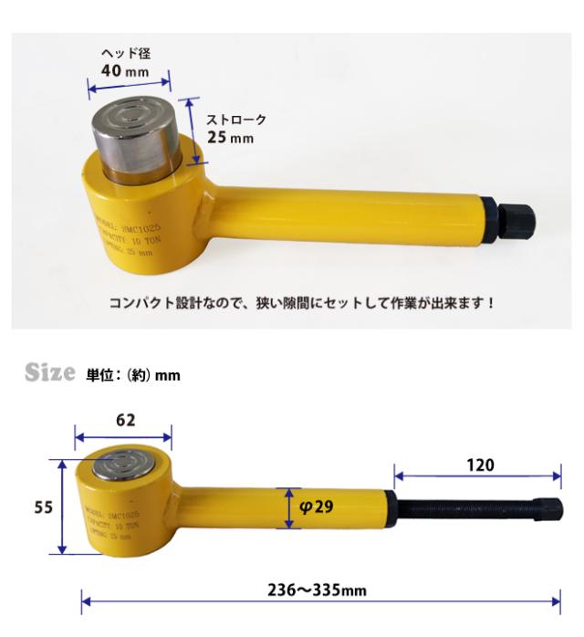 コンパクト&軽量ボディーで狭い隙間にも使えます! ●ネジ+油圧(グリス封入)なので、小型で強力なパワーを発揮します ●ネジの回転を油圧に変えるので微調整が可能です ●1回転で0.4mm上昇します ●コンパクトボディーで狭い箇所や隙間にセットできます ●機械の設置や調整・メンテナンスなどにもお使い頂けます ●縦向けだけではなく、横向けでも使用可能です 【ご注意】 ・ご使用前に必ずネジ部のゴミやホコリを取り除きグリスを塗ってください ・インパクト・電気工具は使用しないでください (調整用なので、ネジを回す作業は手回しで行ってください) ・雨の中や水気の多い場所では使用しないでください (本製品は防水加工ではございません) ・リターンスプリングは内蔵しておりませんので、荷がかかっていない状態では、 ネジ部を緩めて手で押し戻してください 保証期間:6ヶ月 使用状況によっては保証対象外となる場合がございますので返送前に必ず お問い合わせください (保証対象:油圧系統にかぎります) (保証対象外:[例]ダメージやオーバーロードによる変形・ゆがみ等、使用による 車輪の摩耗・水、塩分に起因する故障) 保証期間内の返送運賃はお客様負担でお願いいたします お客様によるイメージ違いでの返品は一切お受け出来ませんので予めご注意ください 品番:YM-10 |