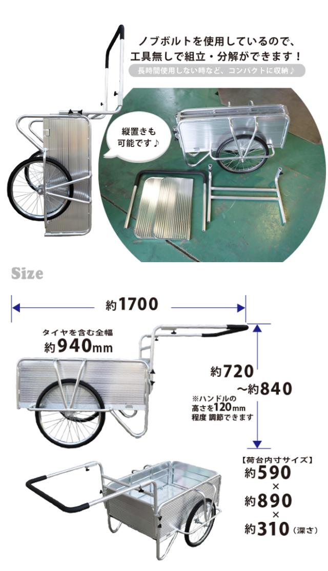 アルミリヤカー アルミ製キャリーカー ノーパンクタイヤ KIKAIYA