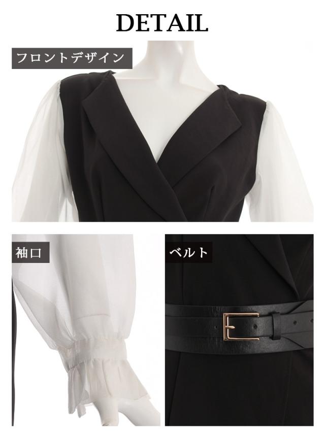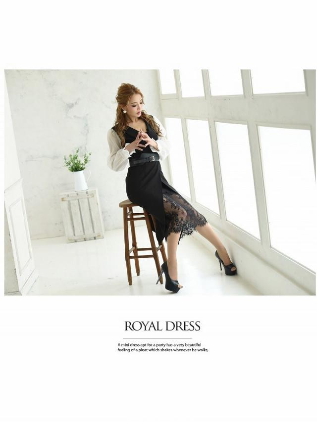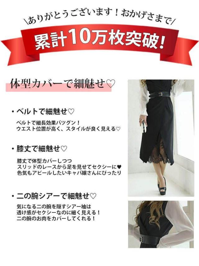 予約販売 キャバワンピース RyuyuChick 袖付き 襟デザイン ベルト付き レース フリル袖 キャバ ワンピース ワンピ