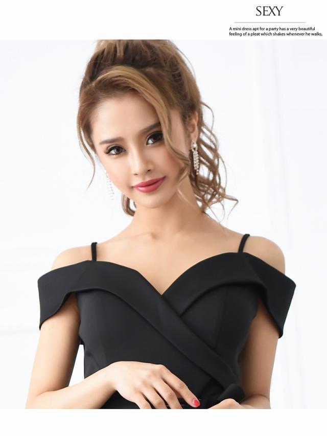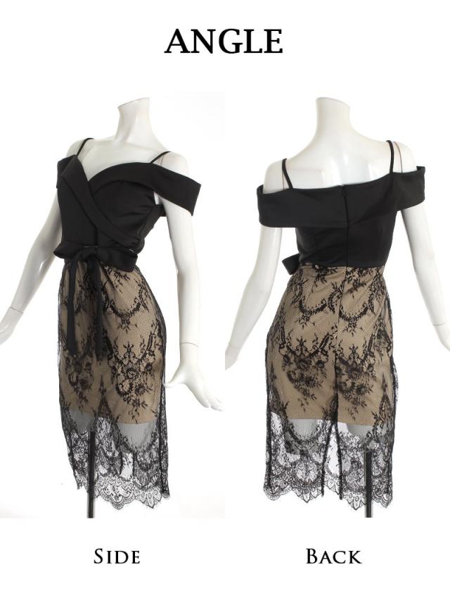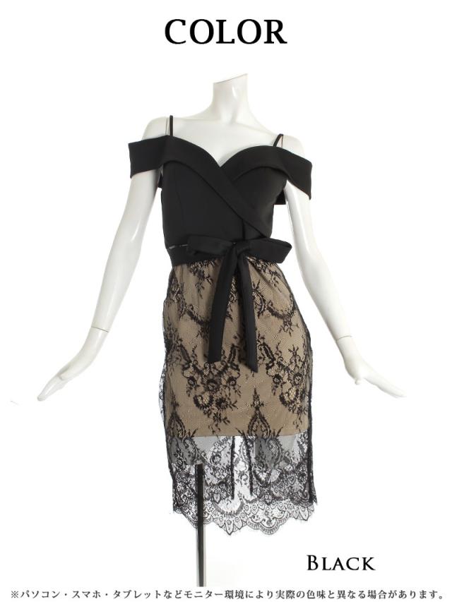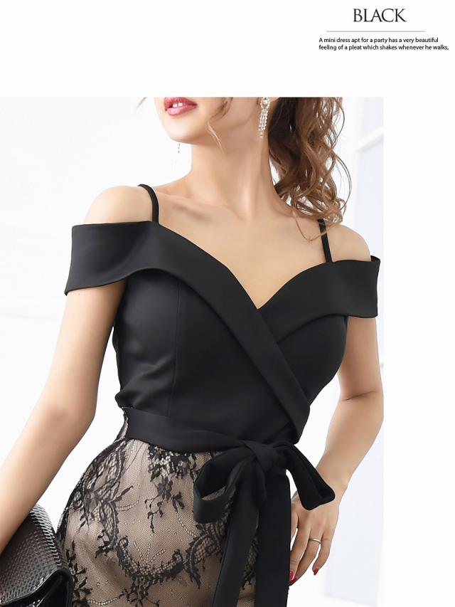 ミニドレス Ryuyu オープンショルダー レース ウエストリボン タイト 袖付き キャバ ドレス キャバドレス ミニドレス