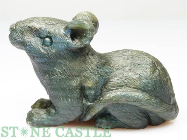 ☆置物一点物☆【天然石 彫刻置物】ねずみ ラブラドライト No.37