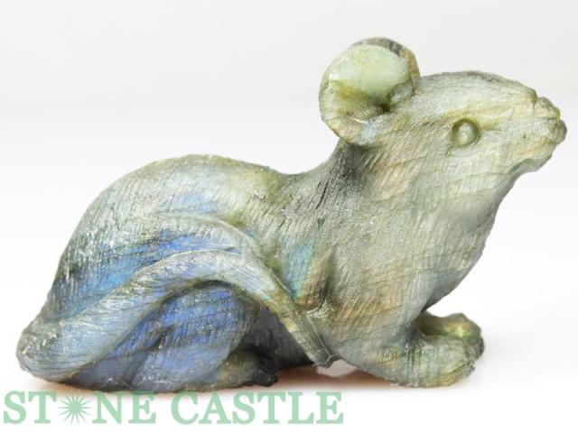 ☆置物一点物☆【天然石 彫刻置物】ねずみ ラブラドライト No.24