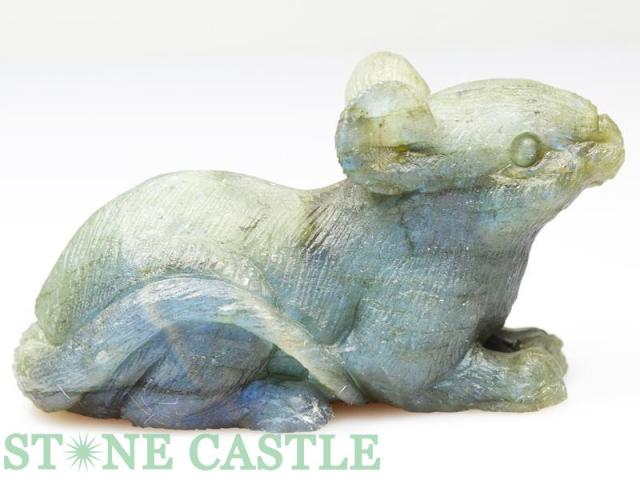 ☆置物一点物☆【天然石 彫刻置物】ねずみ ラブラドライト No.30