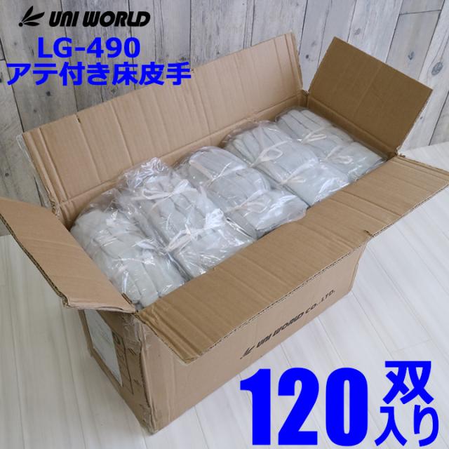 革手袋 作業用 皮手1ケース120双 uni-490 皮手【送料無料】 皮製手袋牛床革手 トレッキング 登山 レザー手袋 ストレッチ 牛床縫 並 ユニワールド【即日発送】
