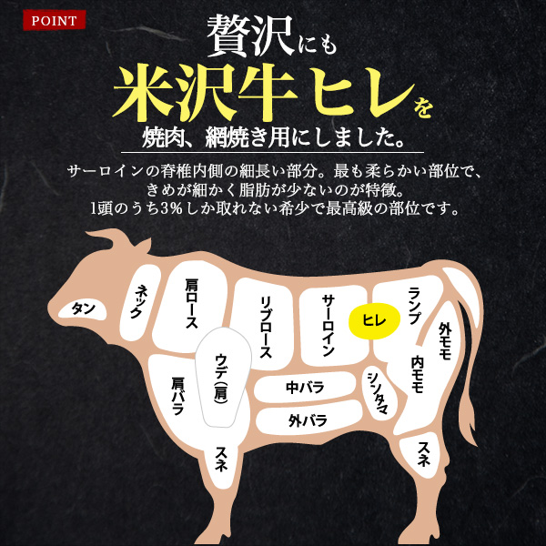 最高級A5ランク 米沢牛ヒレ 焼肉・網焼き用 300g