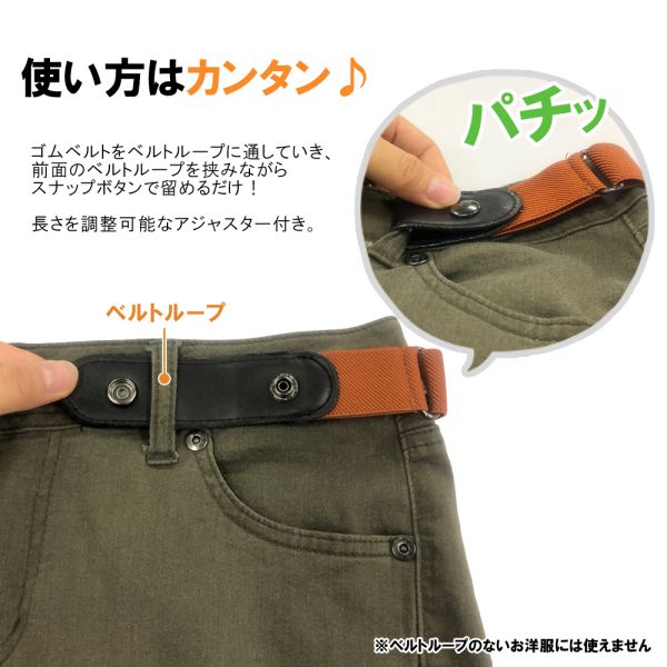 - ゴムベルトは楽ちんで、色違いで楽しめます。探して購入したら以前にもこのお店で購入してました。リピ買いでした。