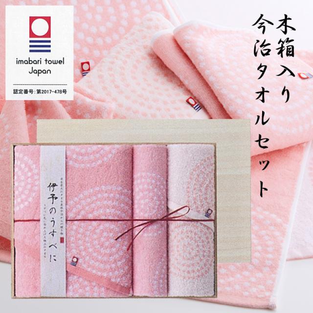 今治タオル ギフトセット 木箱入り 伊予のうすべに 【バスタオル1枚 フェイスタオル1枚 ウオッシュタオル1枚】 IM5027 高品質 コットンタオル ピンク かわいい ふんわり ソフト やわらか いまばり 化粧箱入り 今治タオルブランド