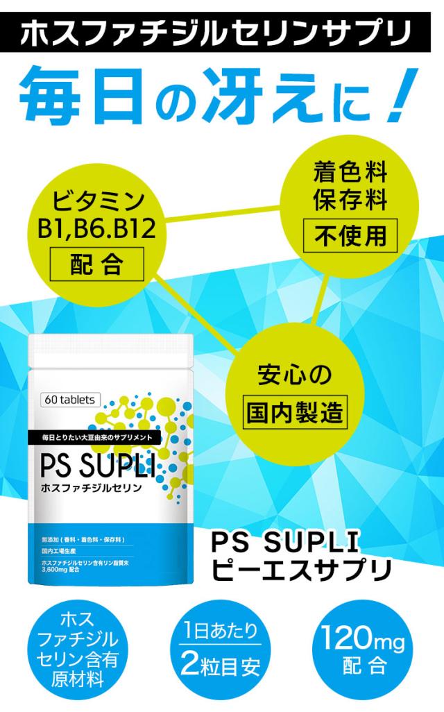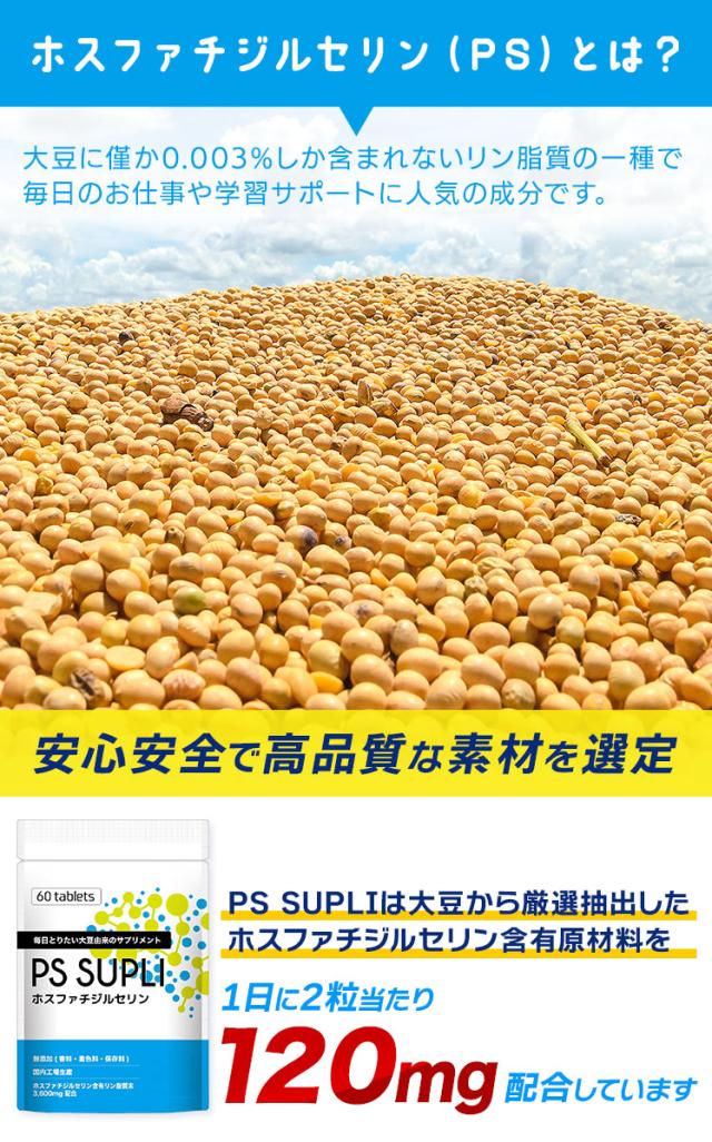送料無料 ホスファチジルセリン 冴え PSサプリ 120mg ビタミン サプリメント 植物由来 日本製