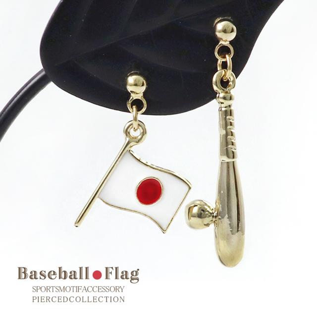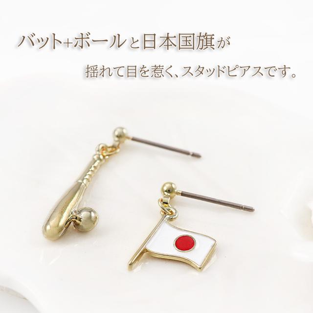 ピアス 野球 ベースボール モチーフ 日の丸 日章旗 日本 国旗 アクセサリー チタンポスト アクセサリー バット ボール 個性的 プレゼント ゴールド 野球好き 野球ファン 応援グッズ 日本応援 野球部 代表 女性 レディース 女子 野球観戦 ギフト 友達 誕生日 贈り物 小ぶり