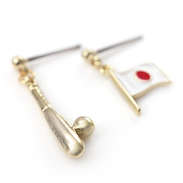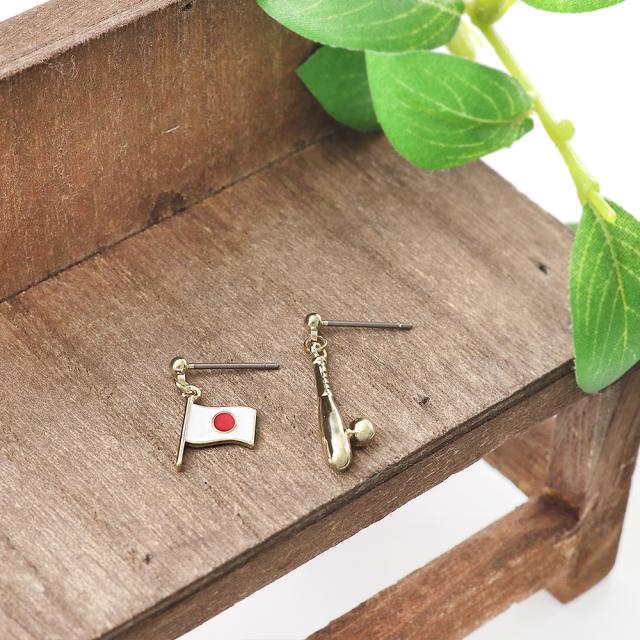 バット+ボールと日の丸国旗が揺れるピアス♪