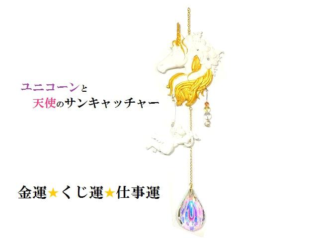 金運・仕事・くじ運・商売繁盛★ゴールド★ルチルクォーツ・水晶★ユニコーンと天使のサンキャッチャー★ラッキーアイテム★サンキャッチャー★ユニコーン★天使★風水