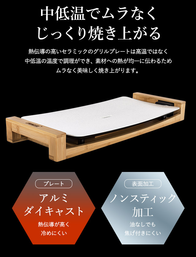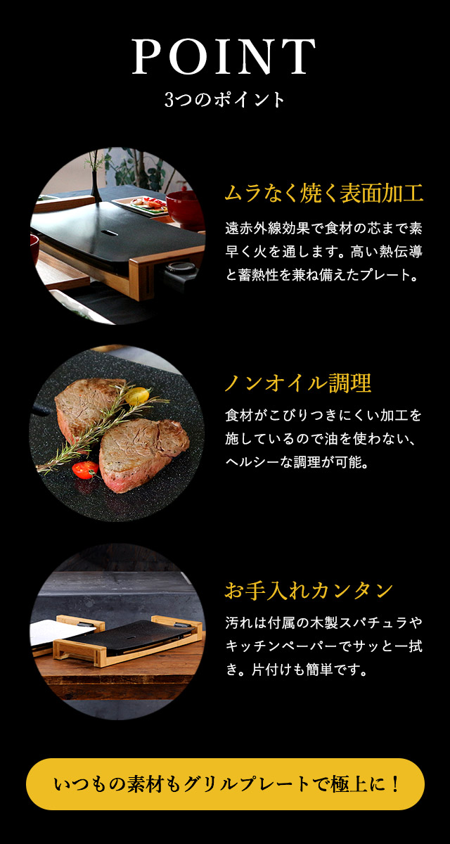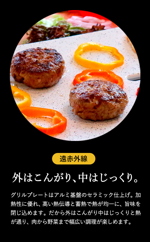 ●サイズ:(グリルプレート)約横56×縦25.5×高さ4.4cm、(台座)約横61.4×縦22.2×高さ7cm