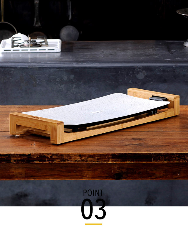 ●材質:(プレート)アルミダイキャスト・セラミックマーブル・コーディング、(台座)竹