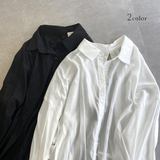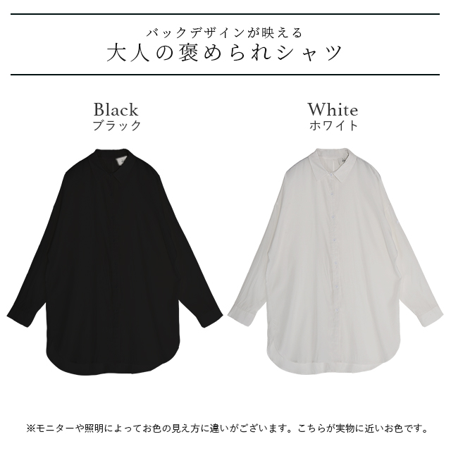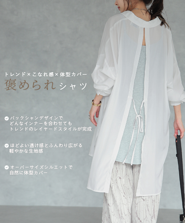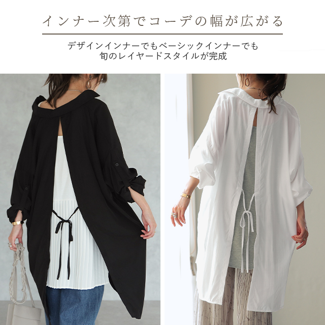 シャツ レディース トップス 長袖 ブラウス バックリボン バックオープン ゆる レイヤード 重ね着風 ドルマン ロング オフィス 白 黒 大きいサイズ 透け シースルー シアー 冬 秋 秋新作