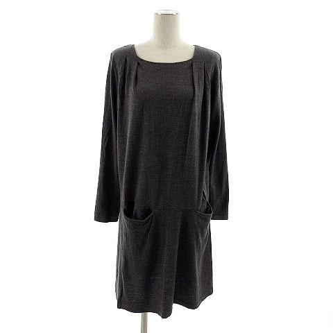 【中古】リフラッティ シップス liflattie ships ワンピース 長袖 ひざ丈 ウール 日本製 グレー レディース