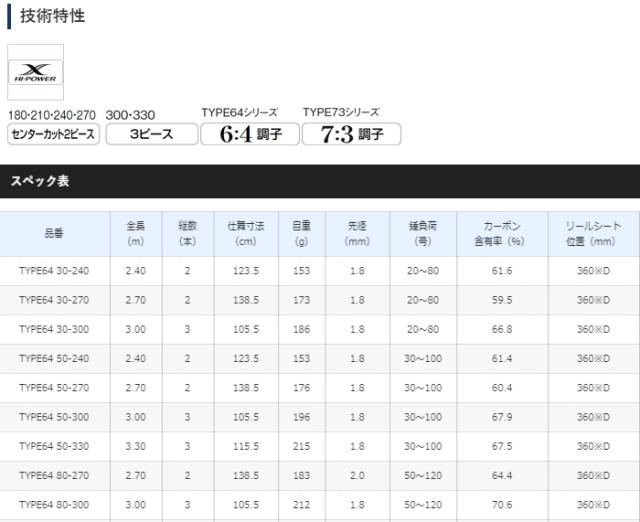 船竿 シマノ 20 シーマイティ X TYPE64 30-240 / shimano