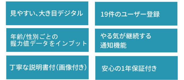 - プラスチックなのでグリップ部分が滑るのと硬く痛いです。 握力履歴は過去1回分しか記録できないようです。