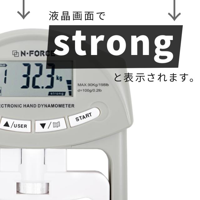 握力 トレーニングのモチベーション対策に!リハビリが必要な方や健康管理に握力測定器をお勧めします! アナログではできない0.1kg単位のデジタル表示。 握り方にはコツもなく、簡単。計測の精度の高いN-FORCE製品のデジタル握力計を、お得な価格 手に入れましょう!