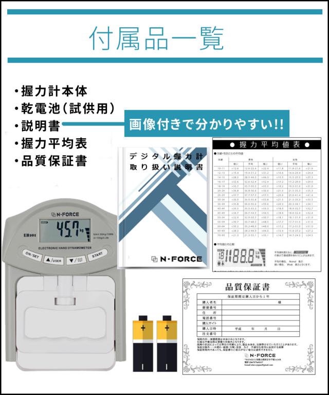 評価点数No1の実績 N-FORCE社製の握力計測器 乾電池付属ですぐに握力測定ができます。