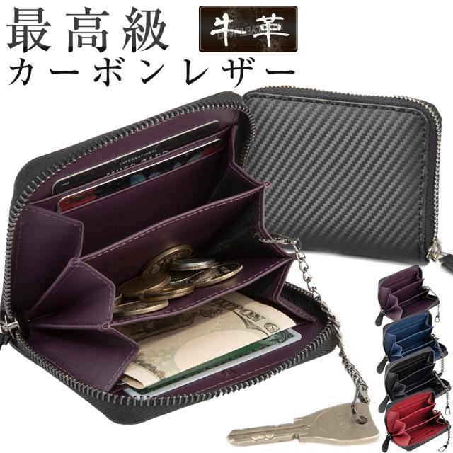 小銭入れ メンズ 財布【GRACE】 カーボンレザー小銭入れ《キーチェーン付きで使いやすい》