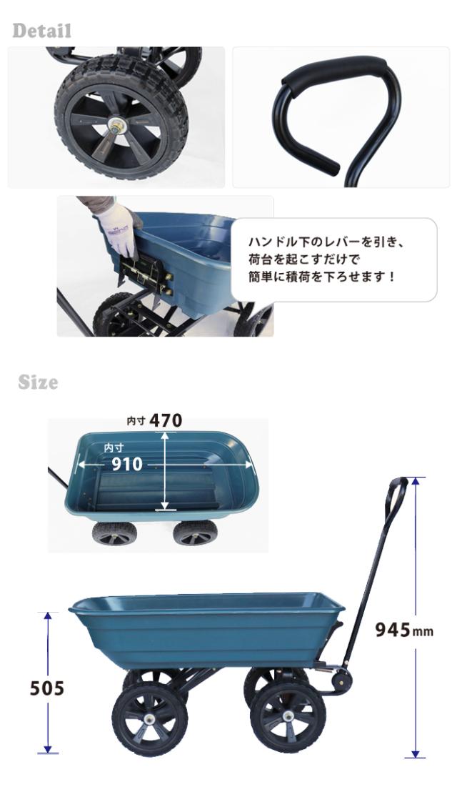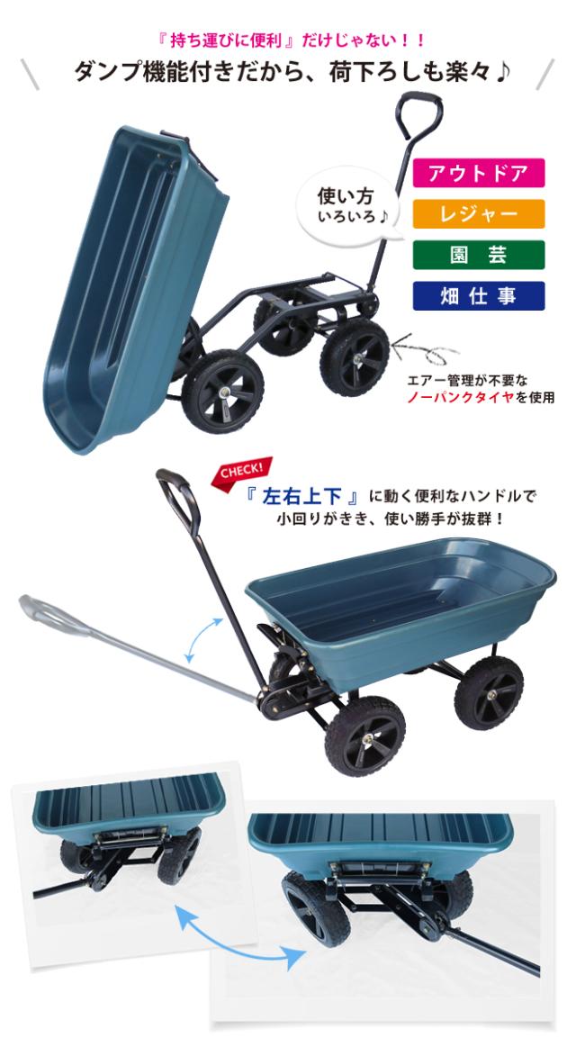 ダンプカート キャリーカート 大型タイヤ ノーパンクタイヤ 台車 アウトドア KIKAIYA