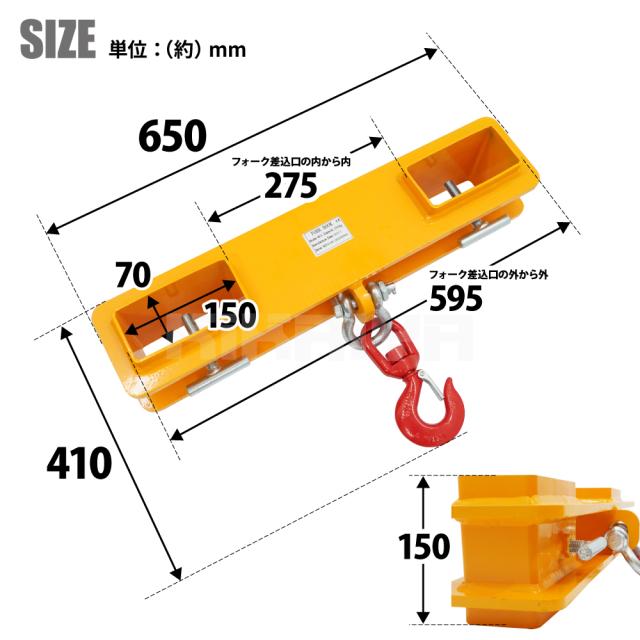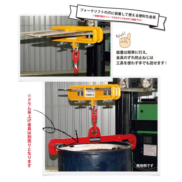 フォークフック フォークリフト爪用 吊りフック 2500kg フォークリフトアタッチメント KIKAIYA