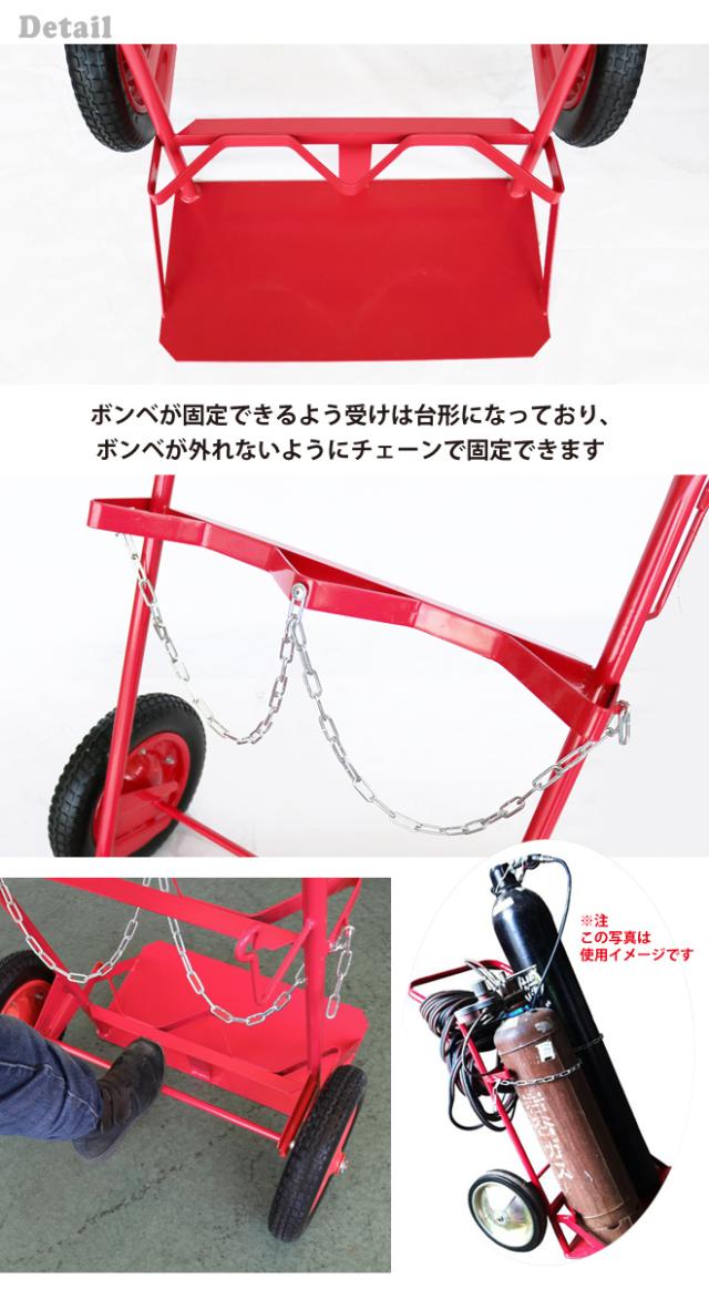 ●手軽に使える2輪タイプのボンベ台車です ●ボンベが固定できるよう受けは台形になっており運搬時にボンベが外れないように チェーンで固定できます ●大きめのタイヤを使用し、長距離運搬時の負担を軽減します ●エアー管理が不要なノーパンクタイヤを使用しています ●すくい板にもスチールを使用しているので、重いボンベを乗せても 十分な強度があります ●酸素、アセチレン高圧ガスボンベを搭載できます 【 ご注意 】 移動しない時は転倒防止のため台車を起こしボンベを立ててください ★いろいろな種類のボンベ台車を取り扱っております インポート品のため、新品ですが当たり傷等がある場合、タッチアップ補修痕がございますがご了承ください 輸送中による細かいキズ、ローラー表面の汚れ等は予めご了承ください ※外見保証はございません 【ご注意】 工事中の工事現場への配達はできません。西濃運輸営業所止めとなります。予めご了承ください。 |