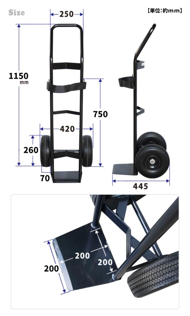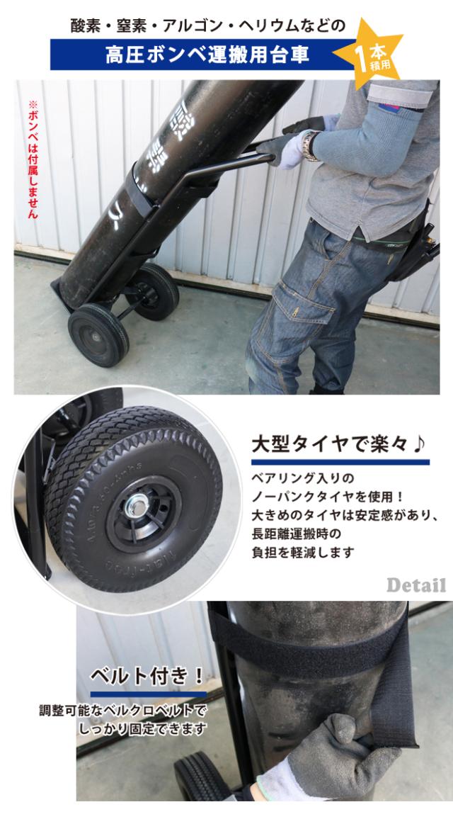 ボンベ台車 1本積用 ベルトタイプ ボンベカート 1本用 運搬車 KIKAIYA