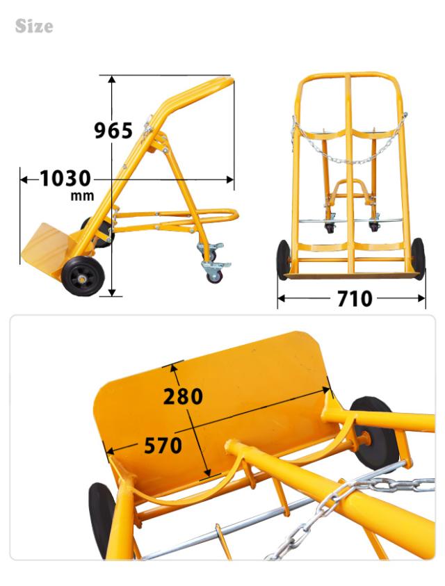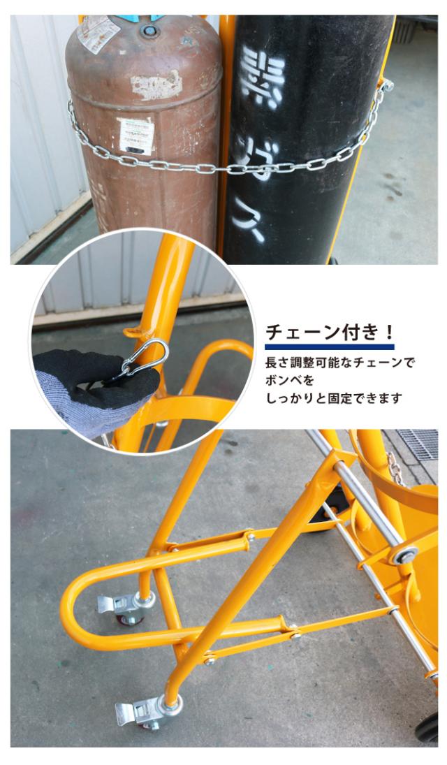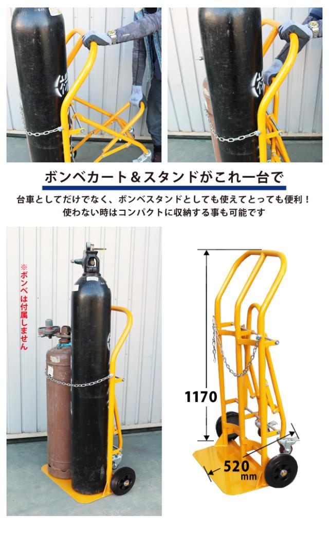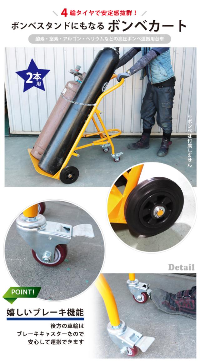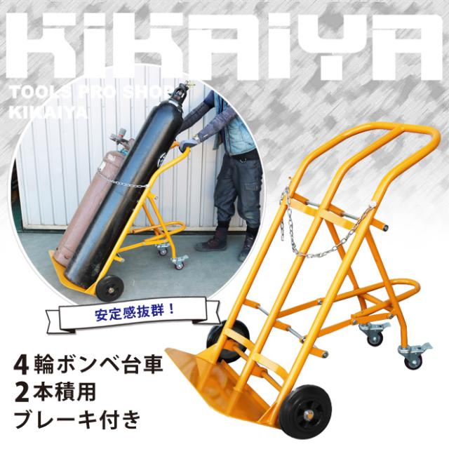ボンベカート ボンベ台車 ボンベスタンド 4輪 2本積用 ブレーキ付き 運搬車 安定感抜群 KIKAIYA