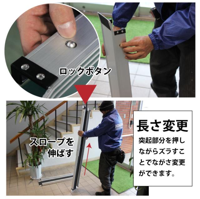 車いす用スロープ 2100mm 2本セット 伸縮式 アルミスロープ 車椅子用 段差解消 アルミブリッジ 最大 270kg迄 介護用品 ハンディスロープ KIKAIYA