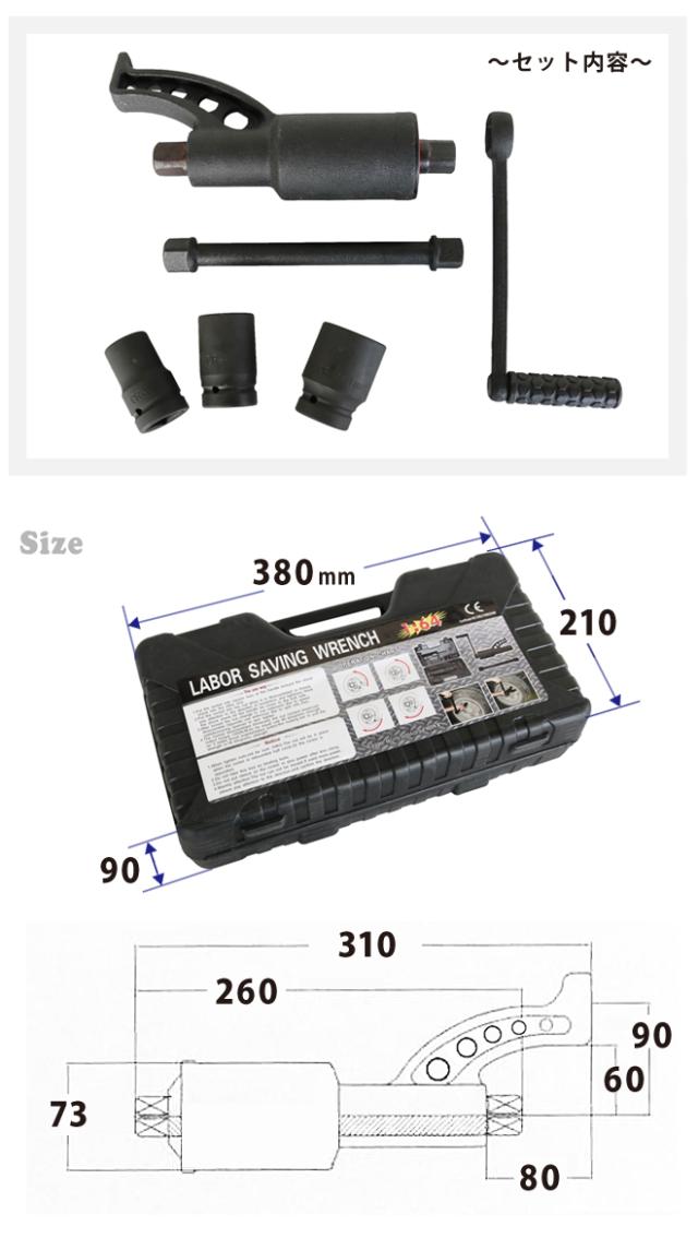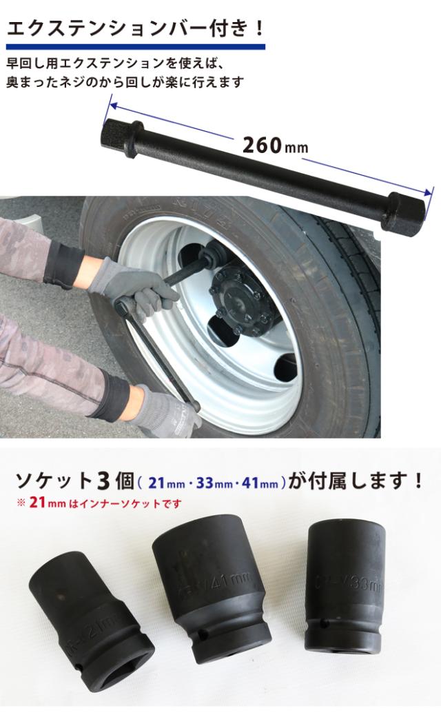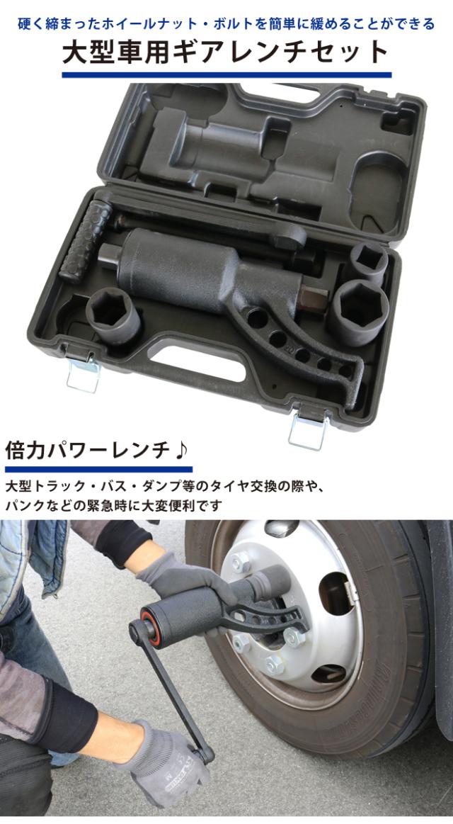 ギアレンチセット 大型車・トラック・バス用 64倍 倍力パワーレンチセット ソケット付き 21mm 33mm 41mm アダプター KIKAIYA