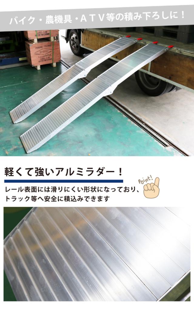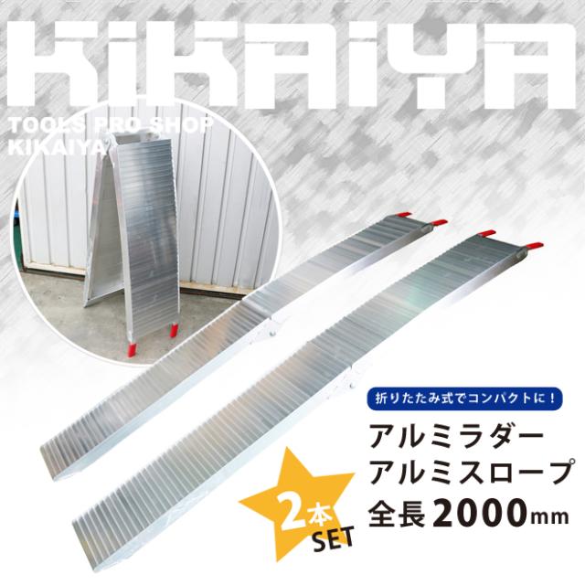 バイクスロープ アルミスロープ 2000mm 2本セットアルミラダー アルミブリッジ ラダーレール 折りたたみ バイクラダー KIKAIYA