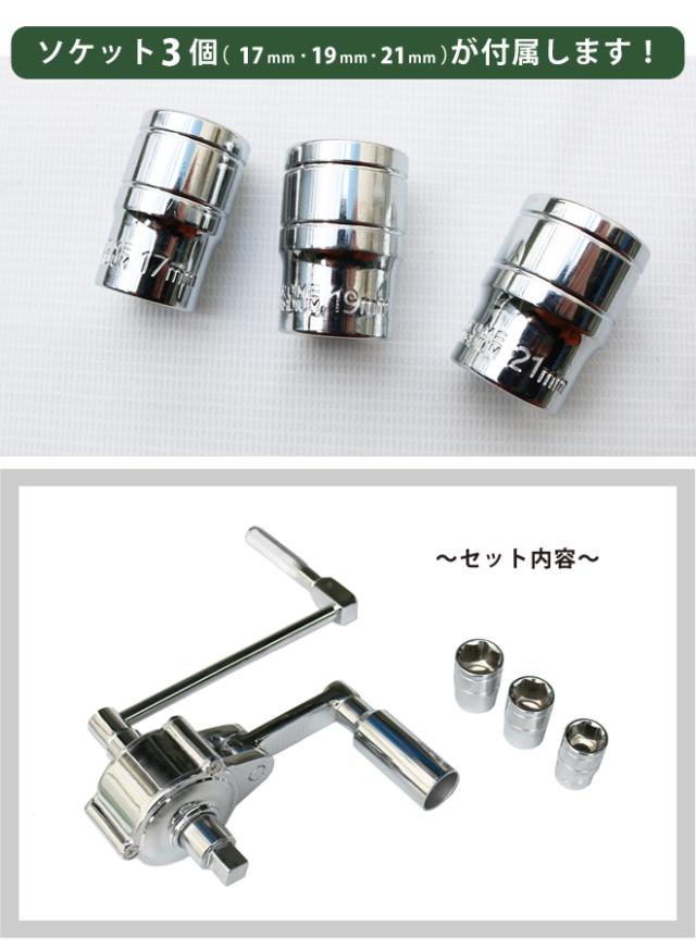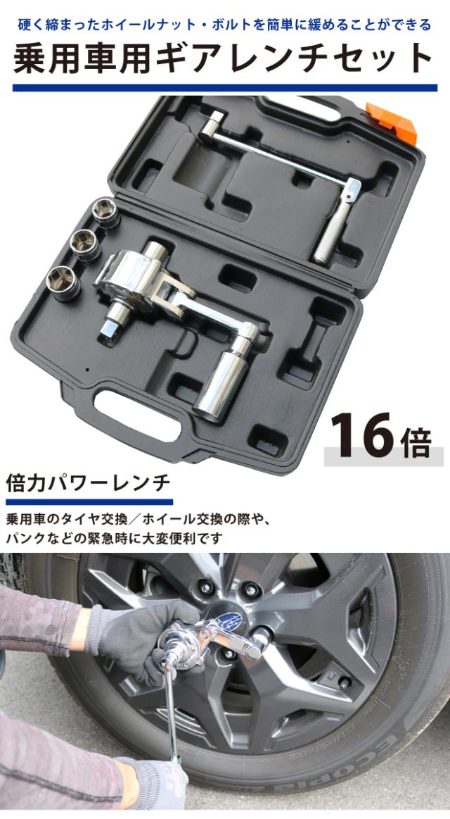 ギアレンチセット 乗用車用 16倍 倍力パワーレンチセット ソケット付き 17mm 19mm 21mm アダプター KIKAIYA