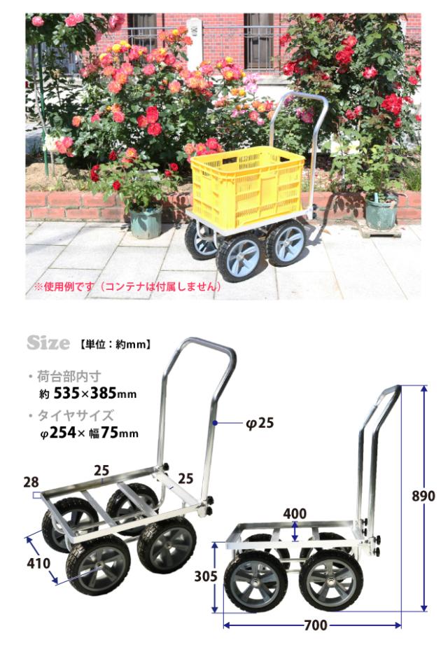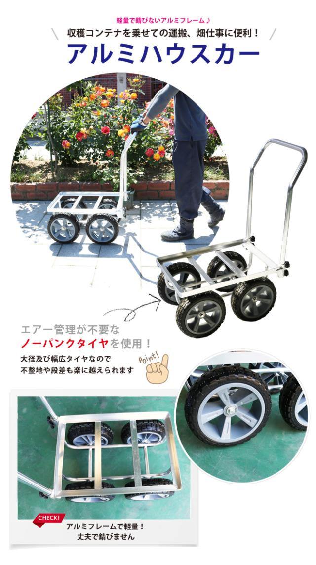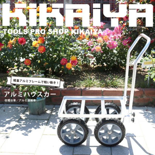 アルミハウスカー コンテナ1個積用 大型10インチノーパンクタイヤ 収穫台車 アルミ運搬車 KIKAIYA