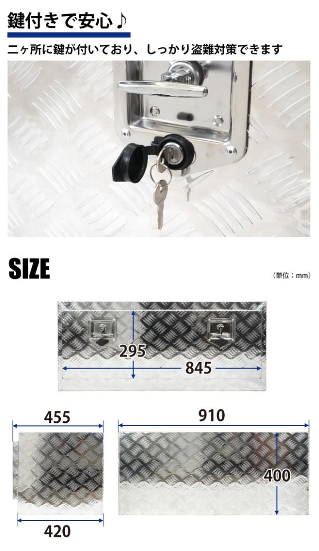 アルミボックス 910×455×400mm サイドボックス 大 アルミ工具箱 トラックボックス アルミツールボックス 軽トラ 荷台 KIKAIYA