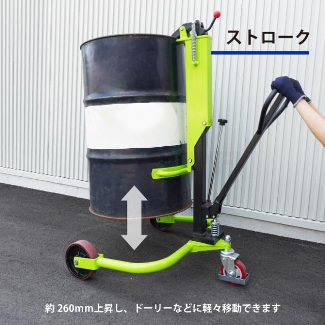ドラム缶キャリー ドラム缶運搬車 油圧式 最大荷重250kg ドラムポーター ドラム缶台車 KIKAIYA