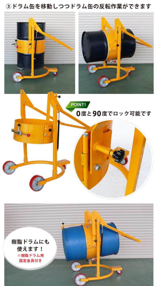 ドラム缶運搬車 反転機能付 ドラムチルト スチールドラムポリドラム兼用 ドラム缶台車 ドラムポーター ドラムキャリー KIKAIYA