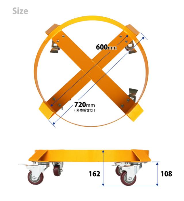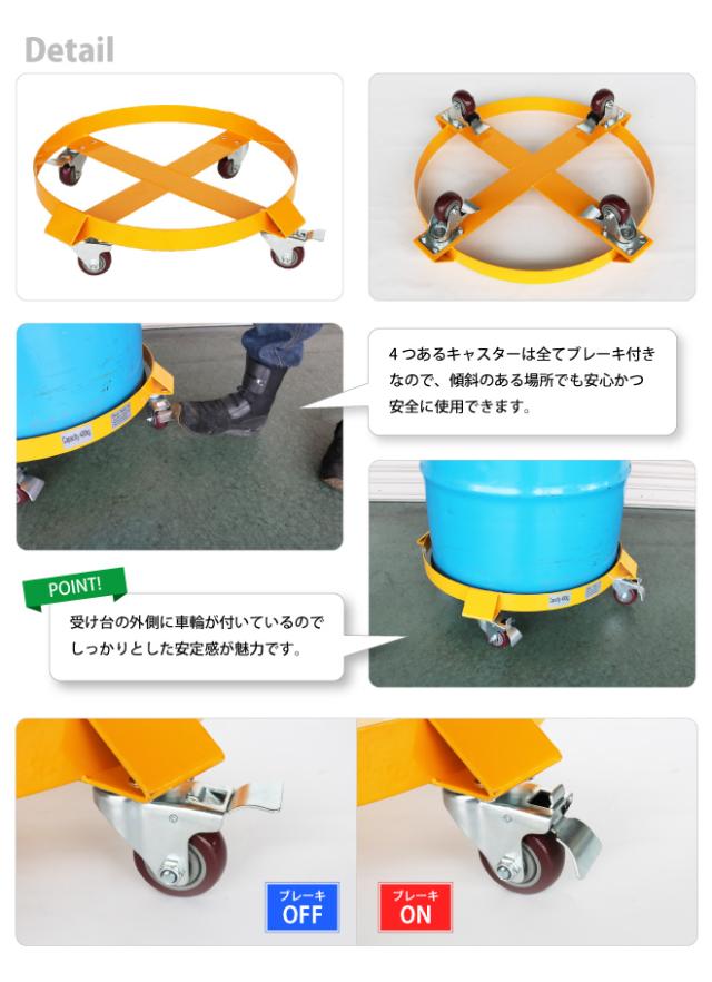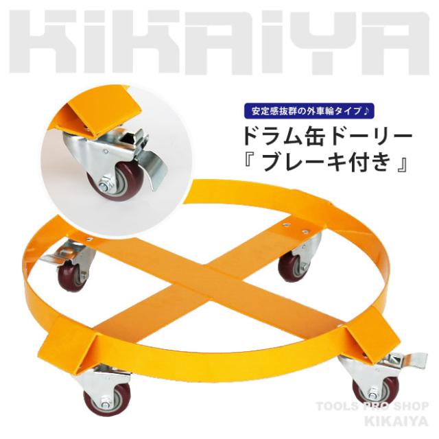 ドラム缶ドーリー ブレーキ付 外車輪タイプ 最大荷重400kg ドラム缶キャリー ドラムキャリー 円形台車 KIKAIYA